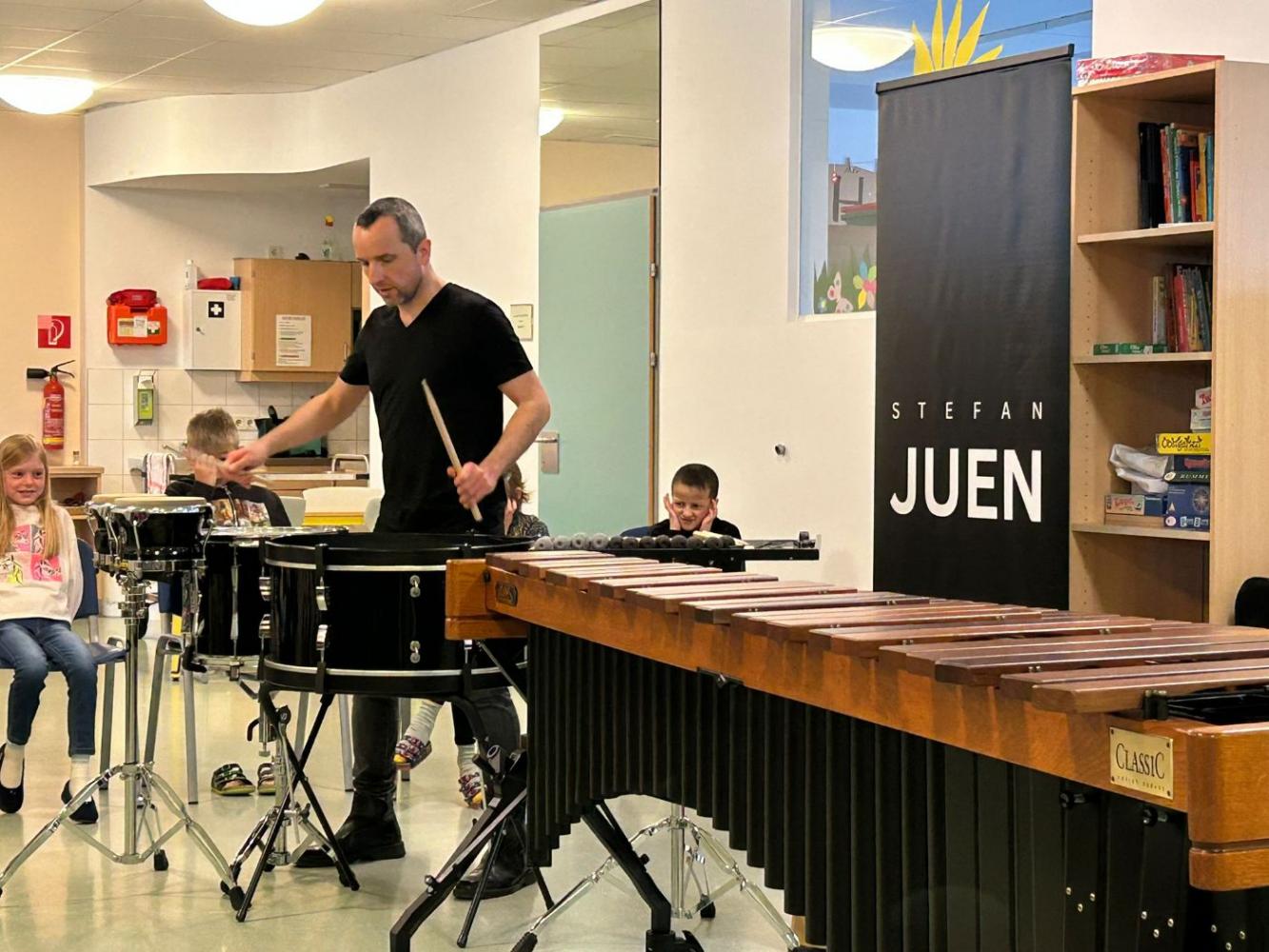 Ein herzlicher Dank gilt Stefan Juen für diese abwechslungsreiche Vorführung, die den Kindern die Welt der Rhythmen auf spielerische Weise nähergebracht hat.